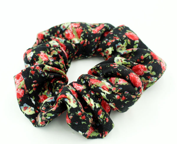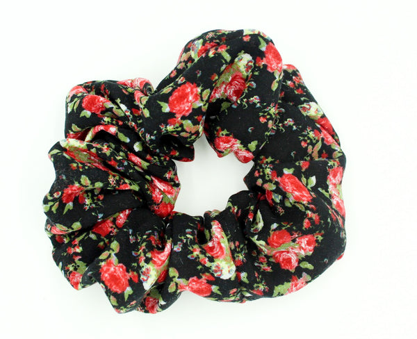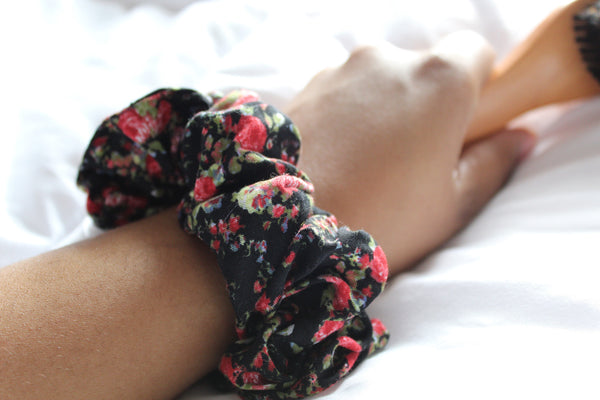 Red Floral Printed Black Scrunchie I The Enchanted Magnolia