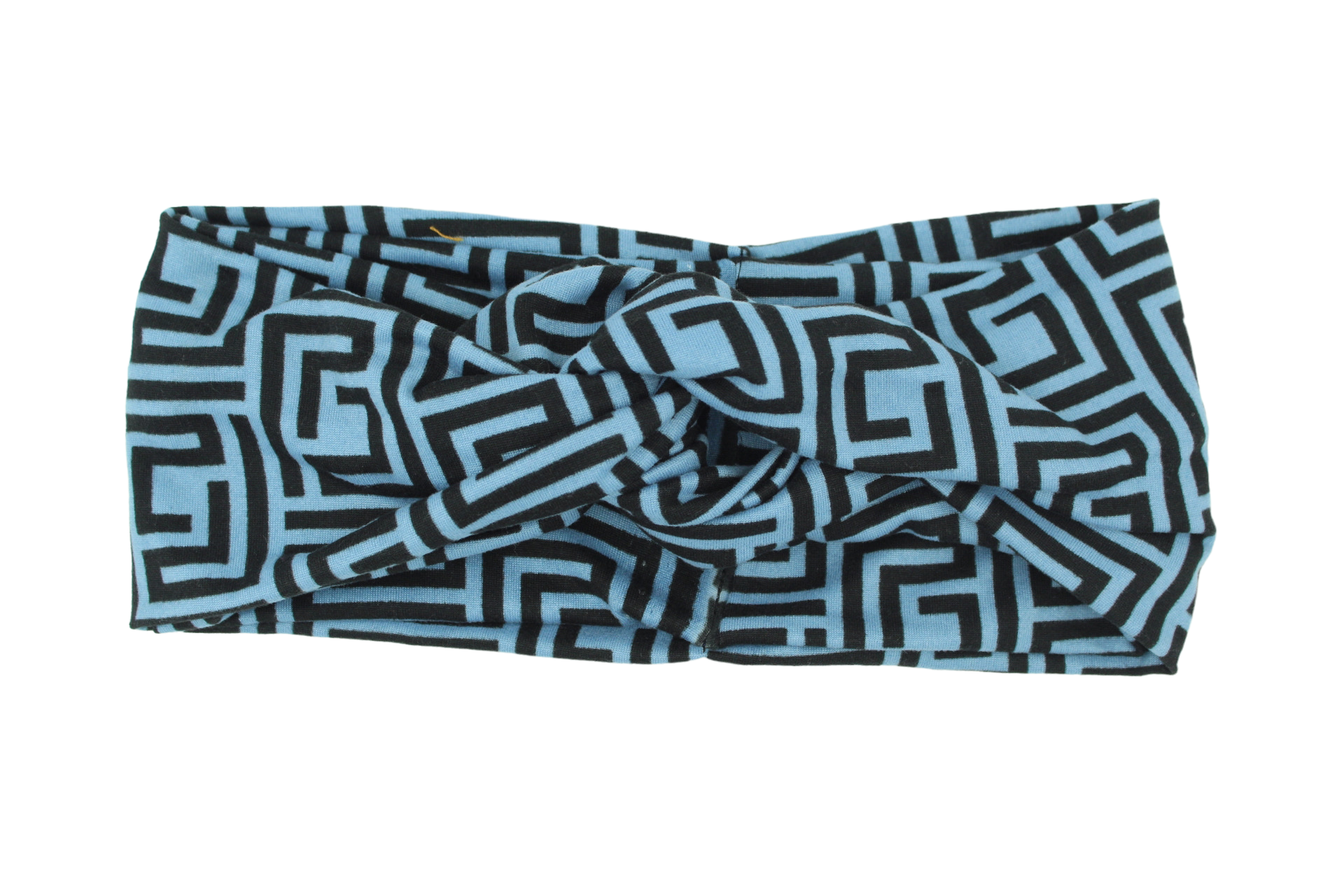 Denim Blue and Black Geometrical Twist Knot Headband I The Enchanted Magnolia