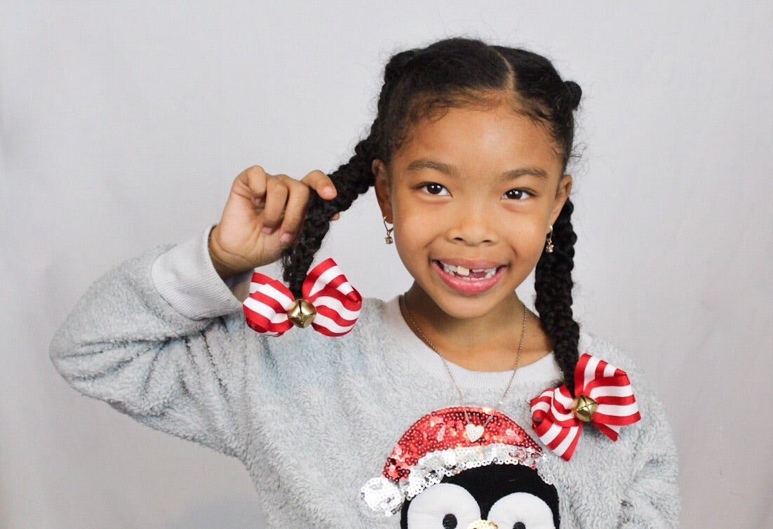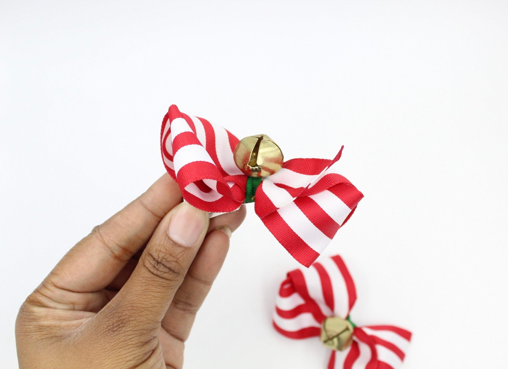 - Beautiful gold jingle bell hand-sewn in the center of each hair bow