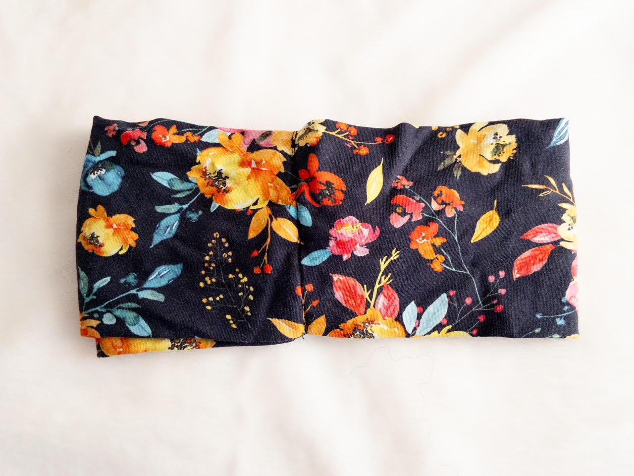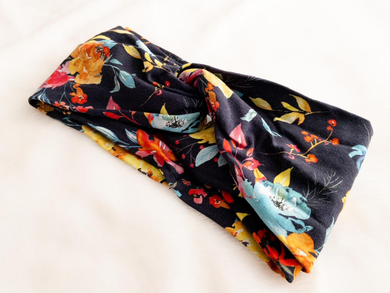 Kids Floral Print on Navy Twisted Turban Headband I The Enchanted Magnolia