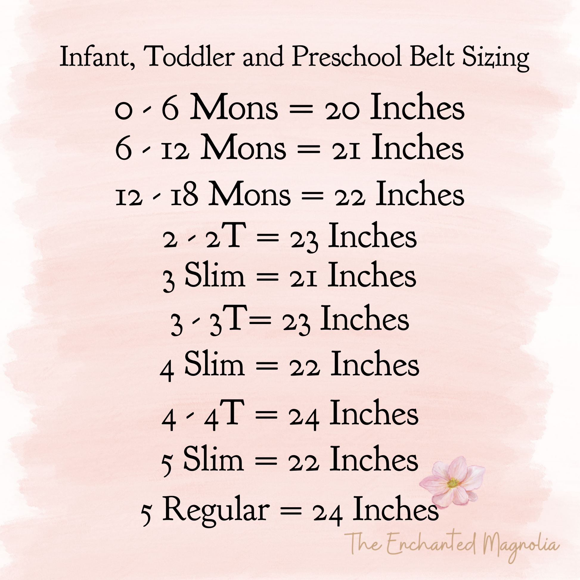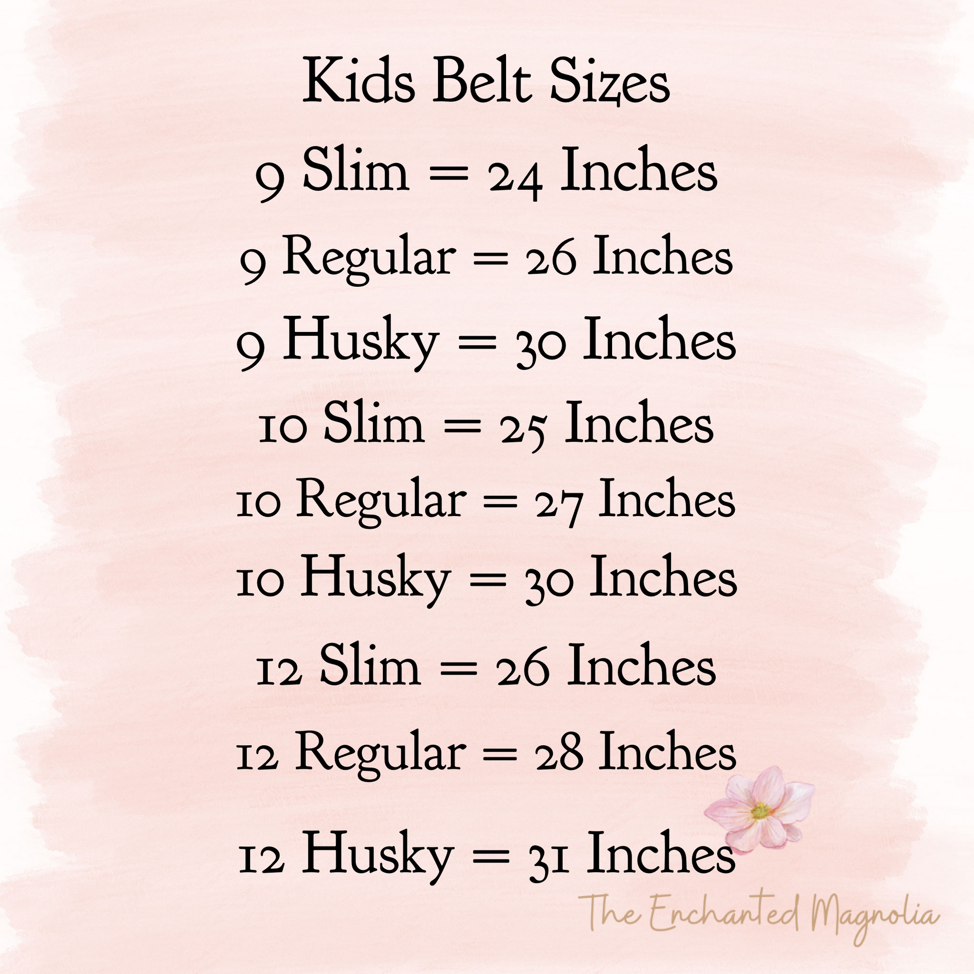 - Belts are custom measured to US kids pants and skirt sizes