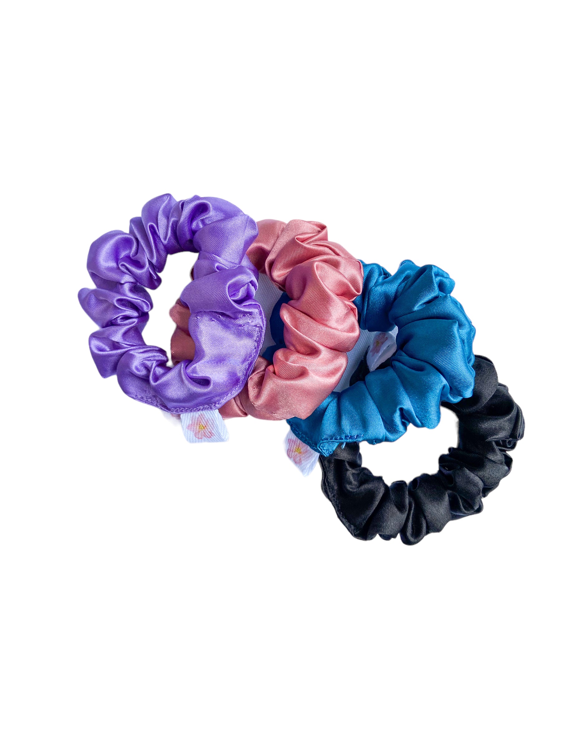 Effortlessly keep your child's hair in place with our Satin Toddler Scrunchie in Black. Made from charmeuse satin, it measures 3 1/8" and is ideal for young children and adults with thin hair. Say goodbye to hair tangles and hello to style and comfort.