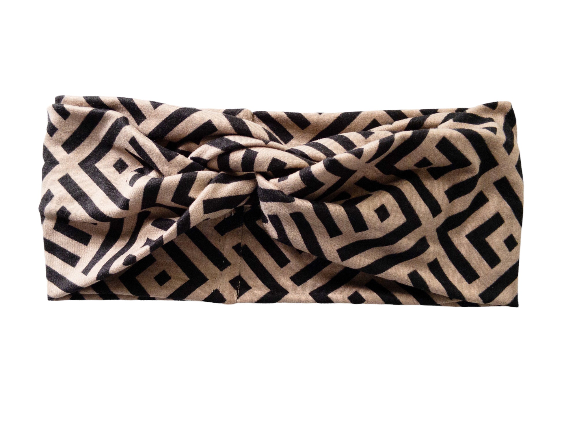 Taupe and Black Geometrical Twist Knot Headband I The Enchanted Magnolia